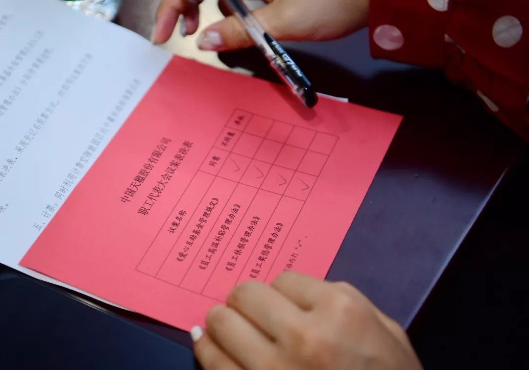 公司工會(huì)職工代表們還聽(tīng)取了《愛(ài)心互助基金管理規(guī)定》、《員工高溫補(bǔ)貼管理辦法》、《員工休假管理辦法》、《員工獎(jiǎng)懲管理辦法》等細(xì)則的解讀說(shuō)明。經(jīng)過(guò)現(xiàn)場(chǎng)提問(wèn)、情況答疑、舉手表決、民主填寫(xiě)投下《議案表決票》等環(huán)節(jié),二屆二次職代會(huì)開(kāi)出質(zhì)量、開(kāi)出實(shí)效。