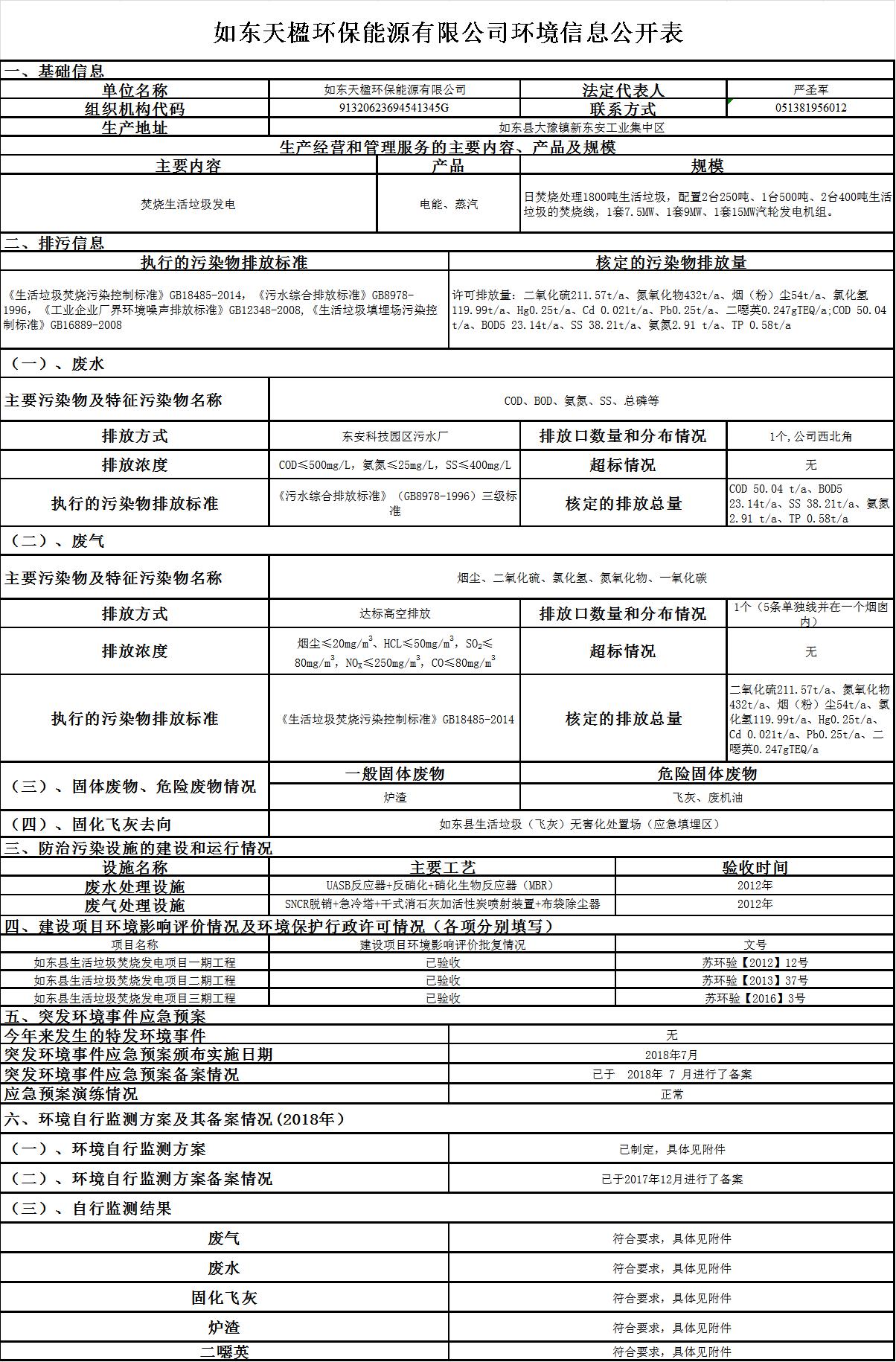 如東天楹環(huán)保能源有限公司2018年環(huán)境信息公開表
